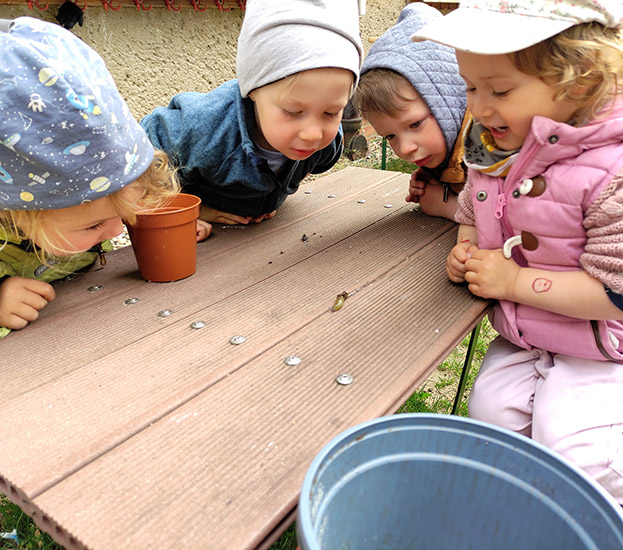 - spielerische Anwendung verschiedener Sprachen im Tagesablauf (z. B. Lieder singen, Verse und Gedichte sprechen, English einmal pro Woche, Gespräche im Morgenkreis mit Pädagoginnen aus Griechenland, Frankreich, Russland, …)