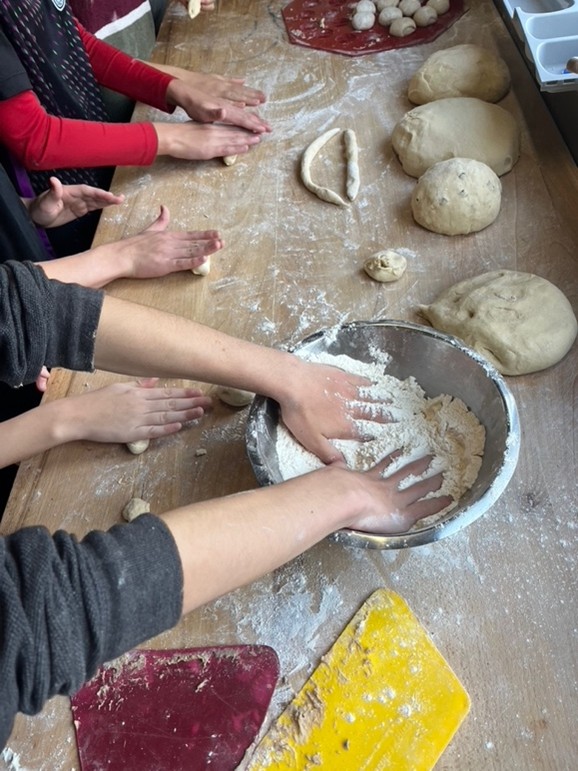 Mädchen und Jungen besuchten die Bäckerei Schulz in Krampfer und durften in eine komplexe Arbeitswelt eintauchen. Sandra zeigte uns die Abläufe in der Bäckerei und die dazu gehörende Technik. Wir bereiteten verschiedene Teigsorten vor, formten Brote, Brötchen, Kekse und bereiteten 2 Kuchen vor. Ein riesiger Ofen, digital gesteuert, vollendete den Backprozess, wir stellten leckerste Backwaren her, die von der Schulgemeinschaft verzehrt wurden. Die Arbeit in der Bäckerei ist anspruchsvoll, die professionelle Arbeit der Bäckerin beeindruckte uns. Wir möchten uns bedanken für den Einblick und werden das Gelernte sicher auf der Montessori Farm oder in der Schule anwenden.