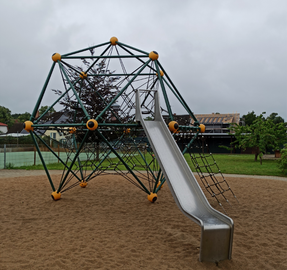 Bereits vor einiger Zeit ist der Wunsch der Kinder nach einer Rutsche an der Kletterspinne auf dem Schulhof entstanden. Etwas