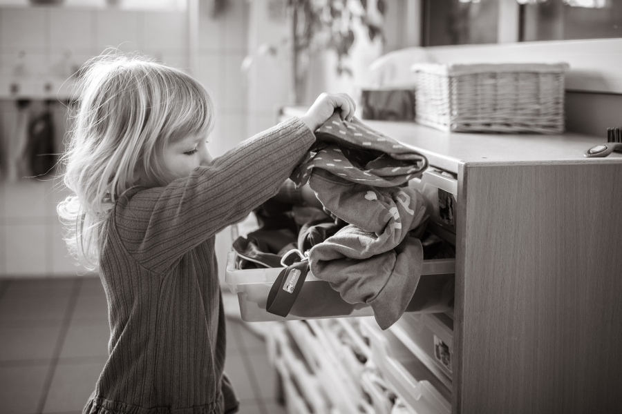 Das Kind sortiert seine Wäsche. Hilf mir, es selbst zu tun, Leitgedanke der Montessori-Pädagogik